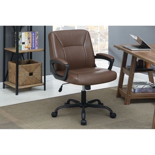 Cushioned Office Chair 1pc Brown Color Upholstered Seat back Adjustable Chair Comfort
