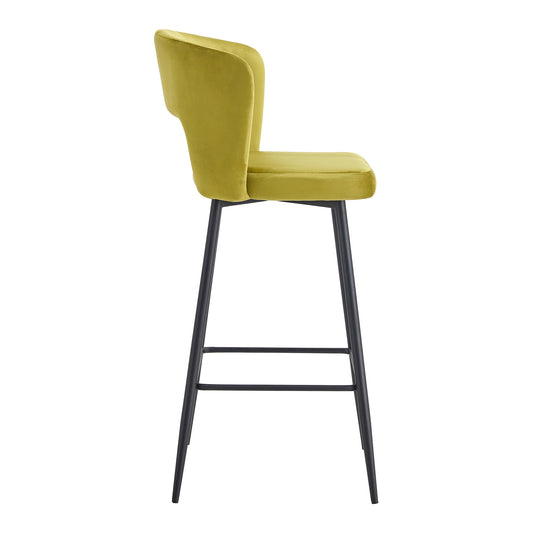 SET OF 2 Cloth armless Yellow Fashion fabric stool, Counter Height Modern Velvet backrest Fabric bar chairs,Bar Stool Chair for Kitchen/balcony with black Metal Legs