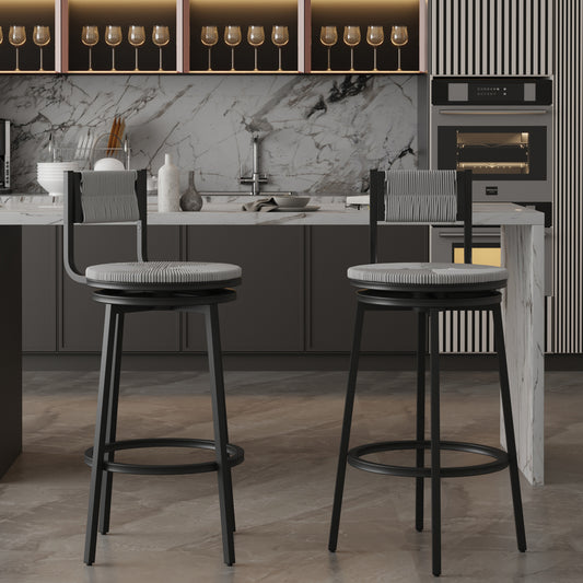 26" Upholstered Swivel Bar Stools Set of 2 Ergonomic Design and Wood Frame