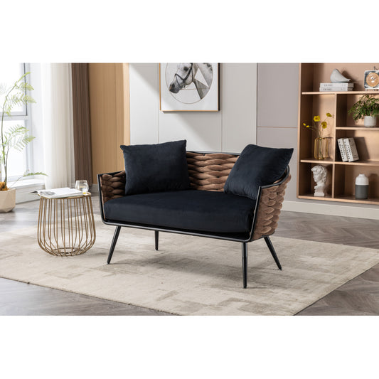 Corduroy Sofa Sleeper Couch Loveseat Sofa with Pillows Comfy Upholstered Deep Seat Sofa for Bedroom,Living Room,Apartment,Office,Dorm-Black Corduroy